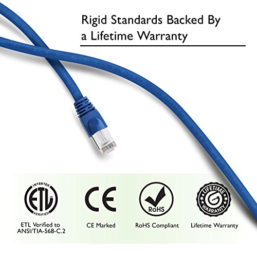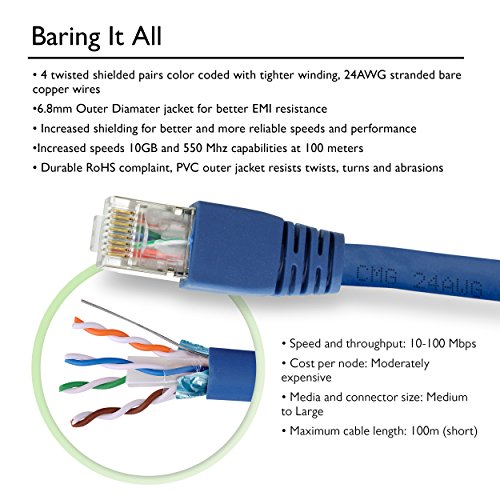 High Performance Cat6a, 24 AWG, RJ45, Shielded Ethernet Cable provides universal connectivity for LAN network components such as PCs, computer servers, printers, routers, switch boxes, network media players, NAS, VoIP phones, PoE devices, and more