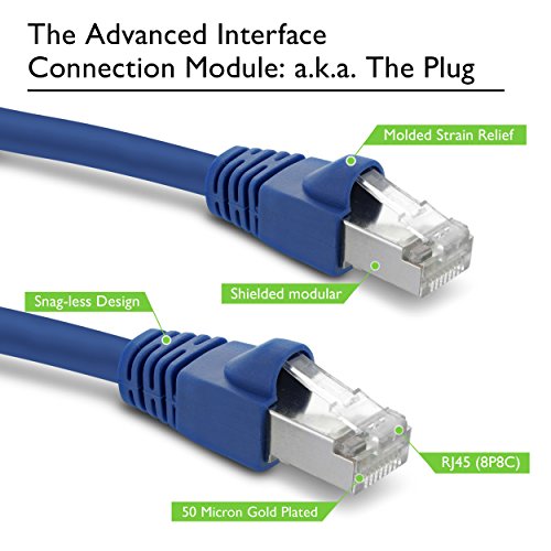 The shielded connectors with 50u gold-plated contacts, molded strain-relief boots, and snagless molded design. They resist corrosion, provide durability, and ensure a secure connection; Bare copper conductors enhance cable performance and comply with specifications for communications cables
