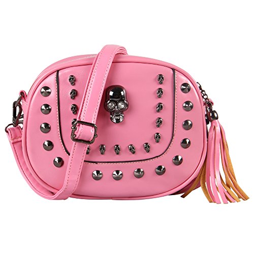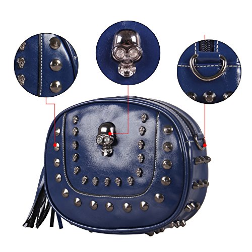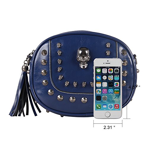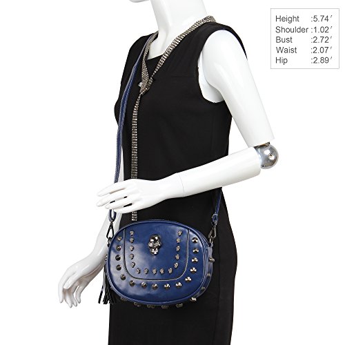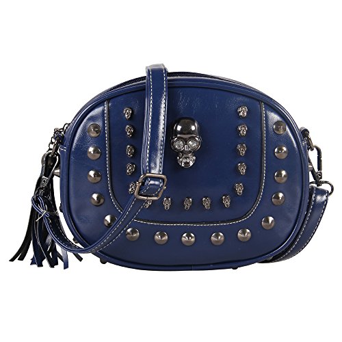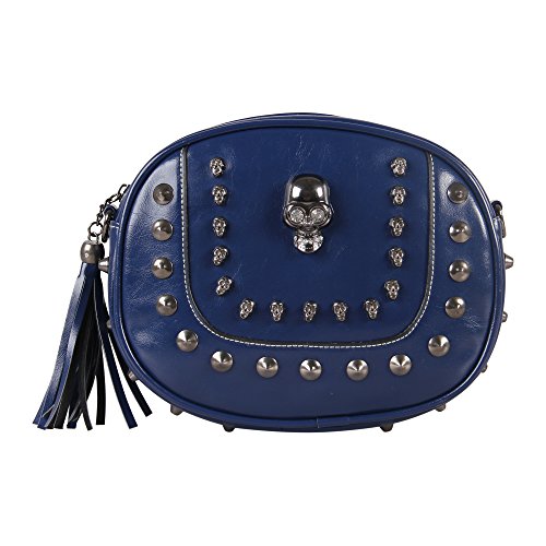 Hynes Eagle Womens Patent Leather Boutique Skull Rivet Cross Body Shoulder Bag (Blue)