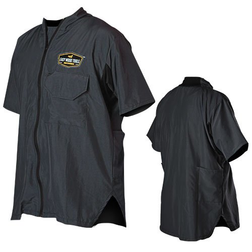As quickly as those shavings roll off of the sharp cutting edge of your turning tool they will slide off this short sleeve turner's smock. Constructed from super lightweight breathable material, this smock features a covered front pocket with pencil holder, large rear pockets, and a fully zippered front combined with a comfortable stretch collar. Gone are the days of chips and debris sliding down inside your shirt and causing itching and discomfort. Made in the USA.Feature