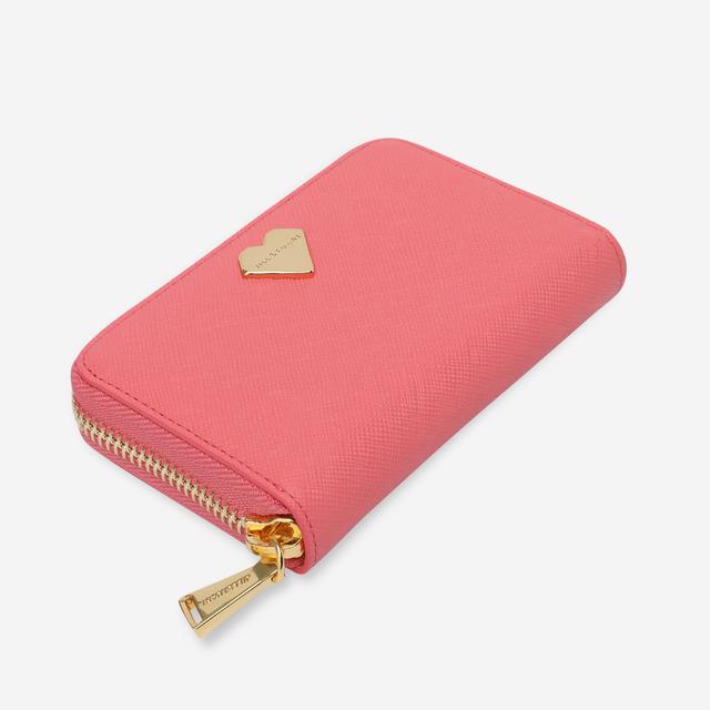 사랑스러운 핑크 톤온톤 컬러의 배색 디자인과 로고 하트 장식으로 포인트를 준 카드 지갑입니다.