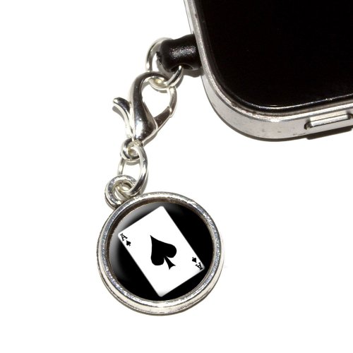 Graphics and More Playing Cards Ace of Spades Anti-Dust Plug Universal Fit 3.5mm Earphone Headset Jack Charm for Mobile Phones - 1 Pack - Non-Retail Packaging - Antiqued Silver