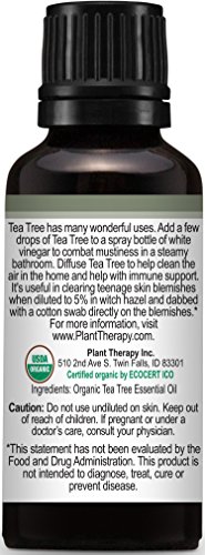 USDA Certified Organic Tea Tree (Melaleuca) Essential Oil. 30 ml (1 oz). 100% Pure, Undiluted, Therapeutic Grade.