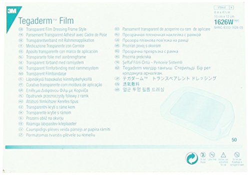 3M Tegaderm Transparent Film Dressing, Picture Frame Style, with Label, 4" x 4 3/4", 1626W Pack of 2 Box of 50 Dressings