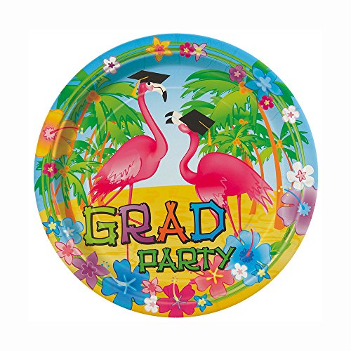 - Package of 8 Flamingo Luau Graduation Dessert Plates