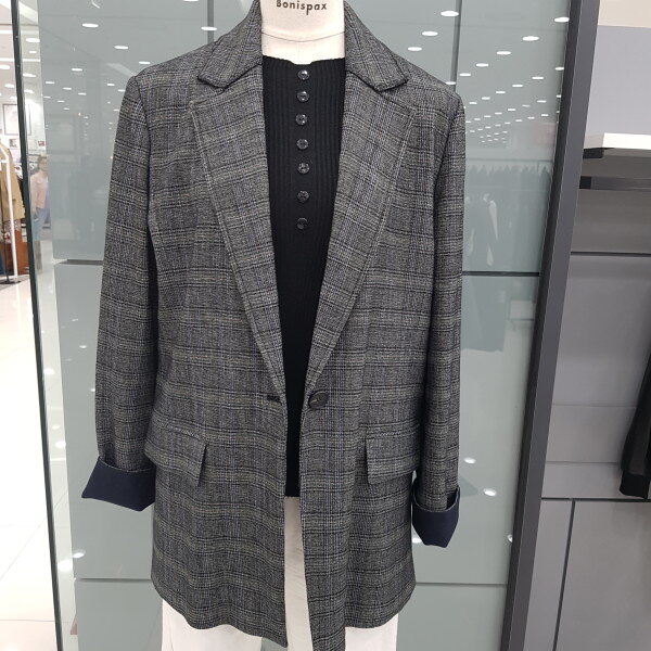 베이직 체크 자켓입니다ㆍ?앞뒤 언발기장이 세련되보이는 스타일 입니다