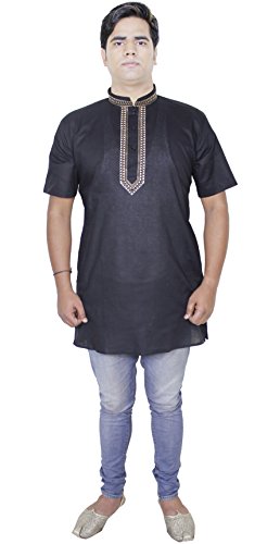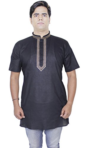 -. Feature : BEAUTIFUL HANDLOOM woven 100% cotton shirt kurta for men / AIRY, LIGHT TOP Available size chest M(40 Inch), L(42 Inch), XL(44 Inch) ; Loose sleeves; Vented sides / BREATHABLE & SOFT Lightweight design; this shirt kurta is perfect for even the hottest of days! / TRADITIONAL DESIGN Handmade in India to ensure quality and longevity / EASY TO CLEAN Machine wash warm, tumble dry low, non-chlorine bleach when needed