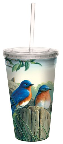 Tree-Free Greetings 80141 Morning Bluebird by James Hautman Artful Traveler Double-Walled Acrylic Cool Cup with Reusable Straw, 16-Ounce