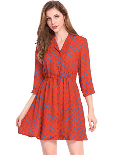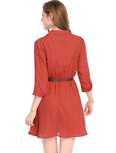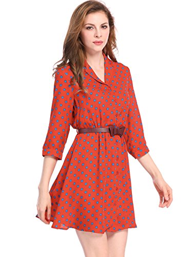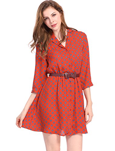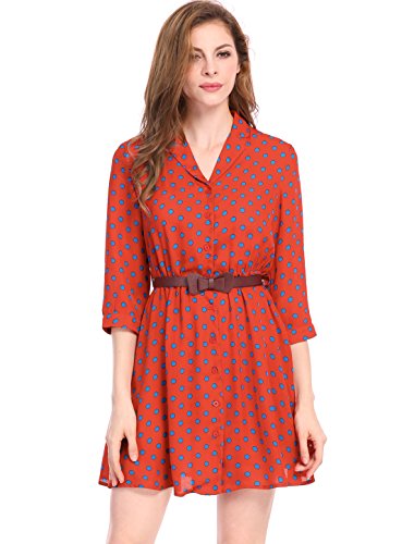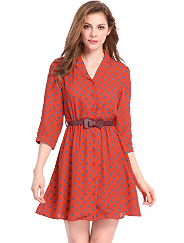 • Crisp polka dots add eye-catching feminine appeal to a shirt dress. A bowknot belt at the waist accents your curves, and three-quarter sleeves provide a hint of extra coverage. This piece will take you effortlessly from desk to dinner in smart chic style.