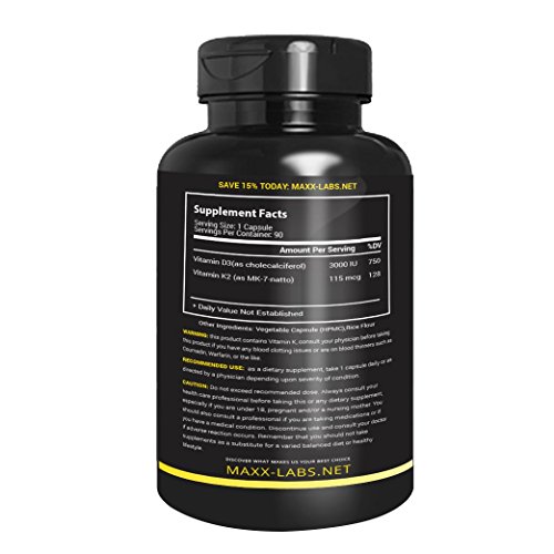 ✔ POTENT FORMULA WITH 3,000IU of D3 and 115mcg OF K2 MK-7 (NATTO)