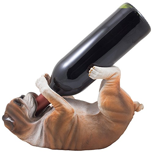 Thirsty English Bulldog Wine Bottle Holder Statue Display Stand Decorative Centerpiece for Bar or Kitchen Counter Décor As Gifts for Dog Lovers