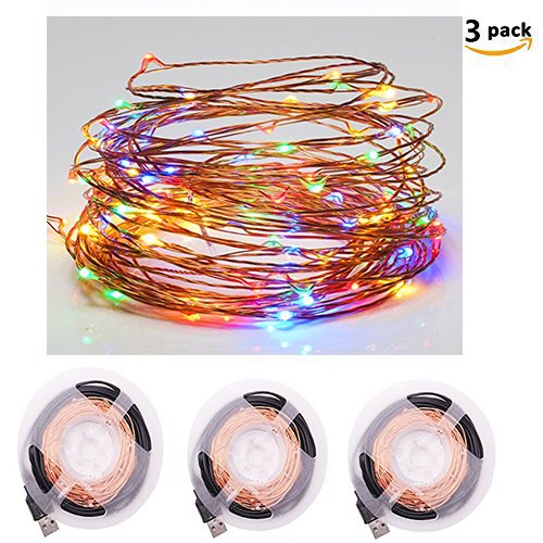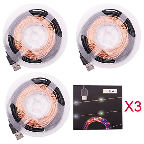 3 Set a lot,33ft,USB LED String Lights, Solla 100 Leds Copper Wire Lights Flexible Starry String Light Waterproof Rope Lights for Indoor Outdoor Wedding Party Christmas Holiday Decoration(Multi Color)