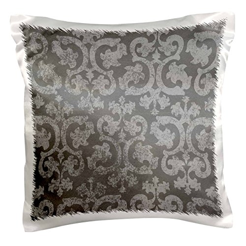 3dRose Grunge dark gray damask - silver grey faded antique vintage swirls wallpaper fancy swirling pattern - Pillow Case, 16 by 16-inch (pc_151435_1)
