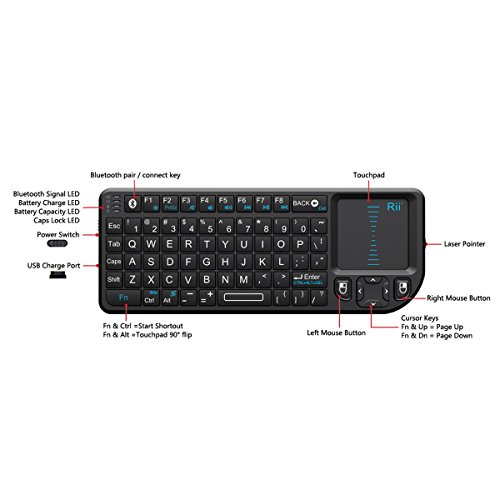 Rii Mini Wireless Bluetooth Keyboard Mouse Touchpad Presenter Laser Pointer for Android box, Android dongle, Mini pc, Smart TV, Xbox The world's first Touchpad 90-degree flip design. With a 90-degree flip a switch function key Touchpad, allows you to be more humane mode of operation to achieve click, scroll, and the mouse click action. Control and enjoy the fun of the same notebook computer. The perfect keyboard, touch, laser pointer combination. Whether it is teaching, training or speech, keyboard, mouse, laser pointer in one hand and hand, three-dimensional explanation, a more lively! The instructor must have the best weapon. This power adapter recharges the lithium polymer battery while the system is off, on, or in sleep mode. It also powers the system if you choose to operate without a battery.
