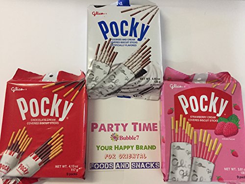 Japanese Snacks Glico Pocky Chocolate Biscuit Stick, family 9 Packs Party Pack (3 packs)