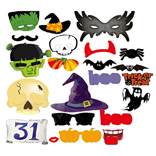 Smilyard 22pcs Photo Booth Props Funny Horror Paper Spider Bats Skull Party Decoration Halloween Photobooth Props