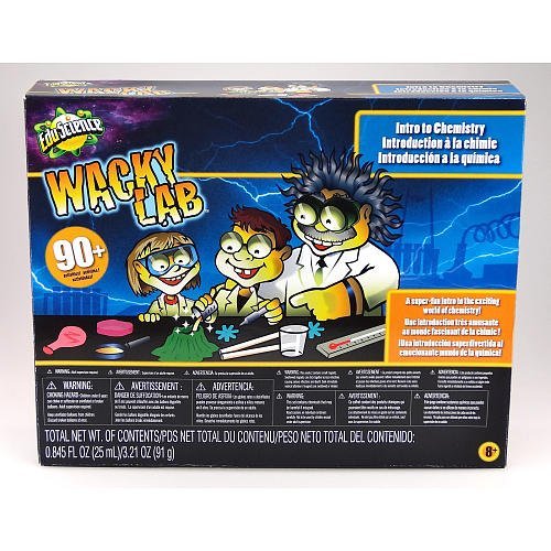 -. Binding : Toy -. EAN : 0803516038716 -. Feature : Super Exciting intro to Chemistry Set / Perform over 99 amazing experiments and demonstrations / Use items like salt, vinegar, sugar, and baking powder to learn about chemistry / Study plants to learn about the chemistry that helps them live / Make foods like yogurt, cookies and ice cream while learning the science behind the process -. IsAdultProduct : 0 -. Label : EduScience -. Manufacturer : EduScience -. MPN : B00GJY6NRA -. PackageQuantity : 1 -. PartNumber : B00GJY6NRA -. ProductGroup : Toy -. ProductTypeName : TOYS_AND_GAMES -. Publisher : EduScience -. Studio : EduScience -. Title : Wacky Lab Intro to Science -. UPC : 803516038716