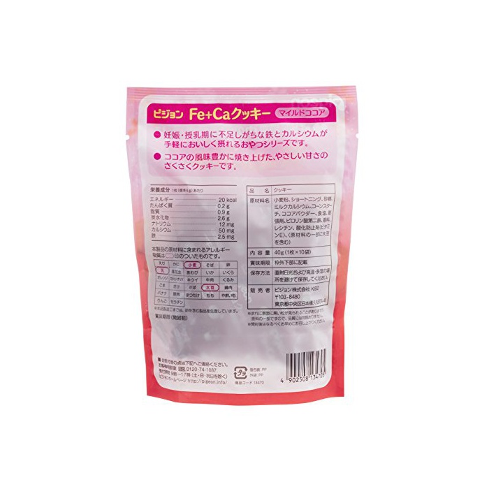 원본상품명: ピジョン ?分&カルシウム Fe+Caクッキ? マイルドココア 40g×5個