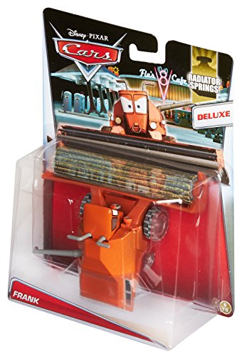 -. Binding : Toy -. Brand : Mattel -. EAN : 0785924368497 -. Feature : Go big with this deluxe die-cast vehicle / Larger and accessorized favorite Disney/Pixar cars characters in 1:55 scale / Deluxe styling and authentic character decos for realistic play / Kids can recreate the action scenes from radiator springs and the world grand prix or invent new adventures / Includes 1 oversized cars vehicle -. IsAdultProduct : 0 -. IsAutographed : 0 -. ItemPartNumber : CDP52 -. Label : Mattel -. LegalDisclaimer : Small parts. Not for children under 3 yrs. -. Manufacturer : Mattel -. Model : CDP52 -. MPN : CDP52 -. NumberOfItems : 1 -. PackageQuantity : 1 -. PartNumber : CDP52 -. ProductGroup : Toy -. ProductTypeName : TOYS_AND_GAMES -. Publisher : Mattel -. Studio : Mattel -. Title : Disney Pixar Cars Radiator Springs Deluxe Frank -. UPC : 789264241892 -. Warranty : 1 year warranty against manufacturer defects