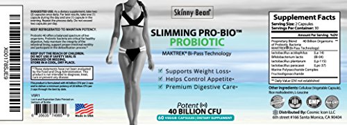 -. Feature : Womens Probiotic by Skinny Bean® Probiotics best for Slimming / ✅ SlimmingTM Probiotic 40 Billion , Delayed Release Capsules- Natural Digestive Weight loss / ✅ PROFESSIONAL GRADE & DEVELOPED BY DOCTORS • Our leading edge probiotic capsules are formulated with the perfect combination of Strains and CFU's to obtain the best probiotic supplements. Probiotics for women & men containing Lactobacillus (Lactobacillus Acidophilus, Lactobacillus Plantarum, Lactobacillus Paracasei) & Bifidobacterium Lactis. / ✅ GLUTEN & DAIRY FREE, NO REFRIGERATION REQUIRED & MADE IN USA Our unique probiotics supplements are Manufactured in the USA in a FDA and GMP, state-of-the-art facility. Every batch is third party tested to ensure the ingredients are safe, pure and potent. We P.R.Ide ourselves on our superior ingredients, and manufacturing process. / ✅ 100% SATISFACTION GUARANTEE Lose weight with Slimming Pro-Bio your money back!