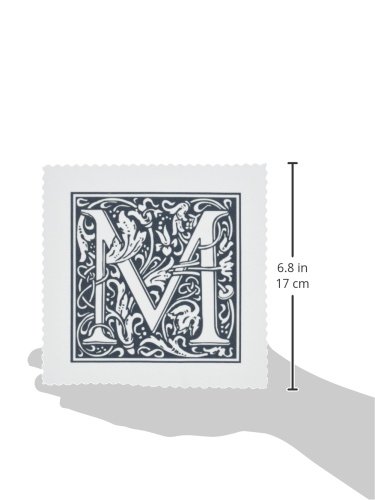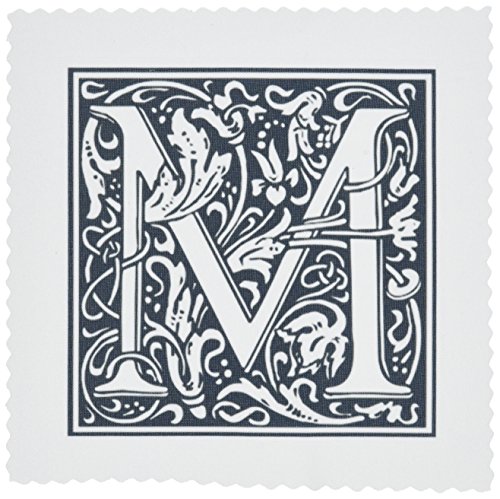 3dRose qs_193108_2 Print of Late Victorian Letter M in Black N White Quilt Square, 6 by 6-Inch