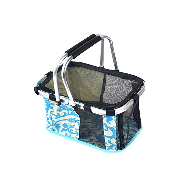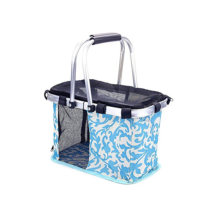 Ananko ananko 애완동물 캐리 백 접이식 메쉬 레지스터 바구니형 농구 (블루 플라워)