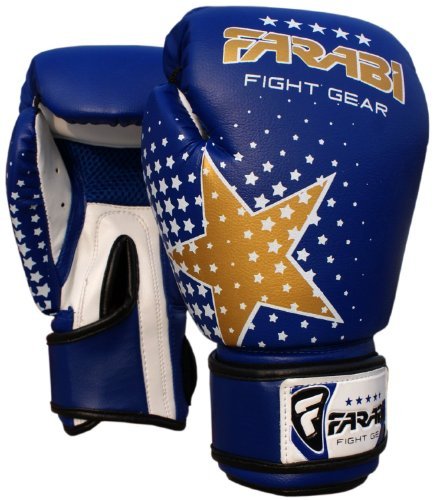 -. Feature : Farabi star boxing gloves 6Oz Blue / Made of synthetic leather, grain style material. / Having breathable mesh palm,quick dry inner linning material and long lasting velcro strap. / Farabi star is recommended for 5-12 years old junior trainers / Available in six different colors