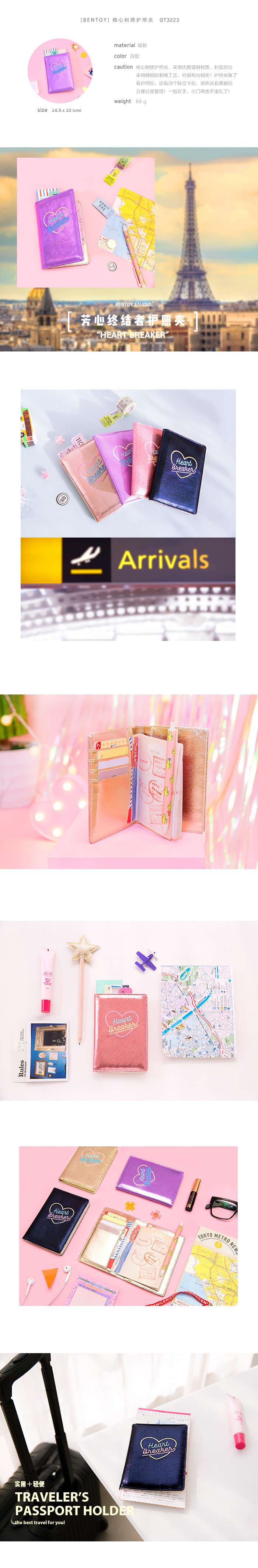 Bentoハートターミナル刺繍パスポートホルダー文芸ソフト姉妹多機能レザー文書ホルダー