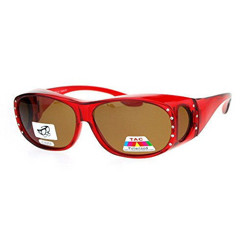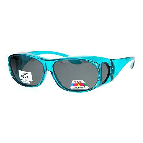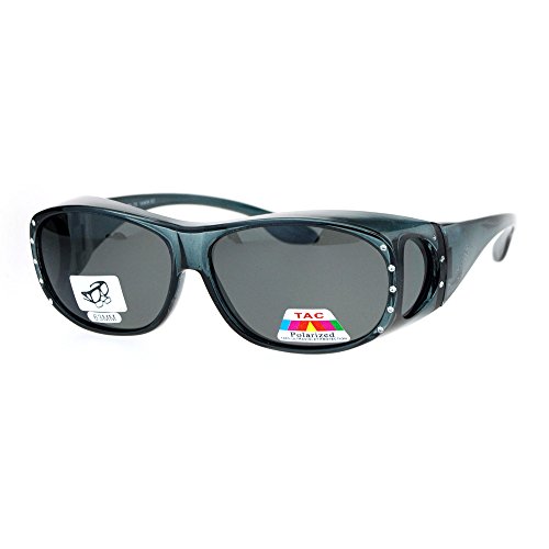 Womens Rhinestone Polarized Oval Fit Over Sunglasses