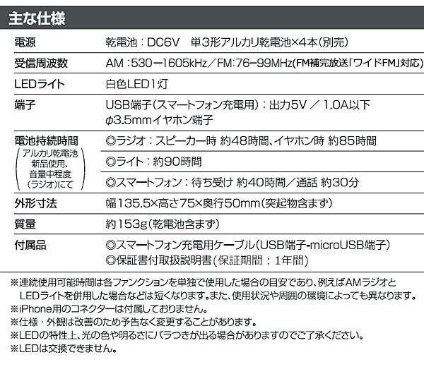| モバイルバッテリー、LEDライト、ラジオの1台3役!! |