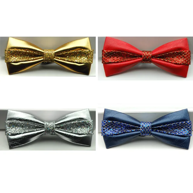 | [해외]남성 럭셔리 스플 라이스 반짝 격자 체크 가죽 나비 넥타이 독특한 사전 묶여 나비 넥타이 새로운 BWTRS0017 |