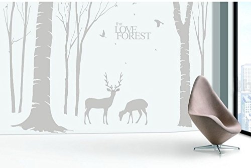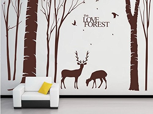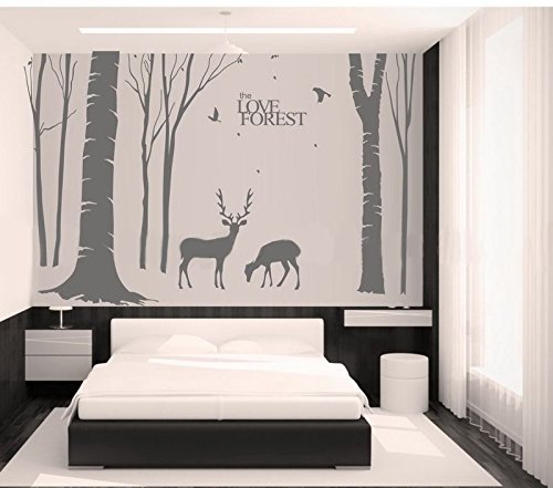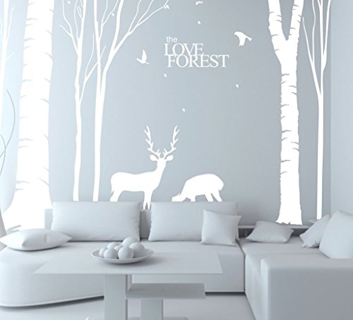N.SunForest Giant White Tree Vinyl Wall Decals Animal Deer Elk Birds the Love Forest Stickers Baby Nursery Home Bedroom Decor Art Murals - 6.5ft
