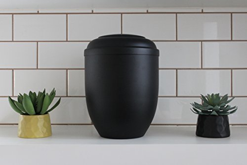 Modern Metal Cremation Urn w/ Velvet Bag – 100% Aluminum Metal – Adult Size (Matte Black)