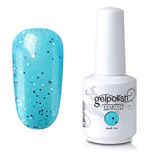 Elite99 Soak-Off UV LED Gel Polish Nail Art Manicure Lacquer Glitter Powderblue 222 15ml