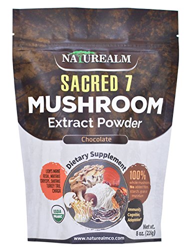 -. Feature : SACRED 7 MUSHROOM EXTRACT POWDER - Reishi, Maitake, Cordyceps, Shiitake, Lion's Mane, Turkey Tail and Chaga - 7 different species of mushrooms, each with unique healing properties, utilized for centuries throughout the world. NEW AND IMPROVED FORMULA with Organic Cocoa Powder for better flavor. LEVEL UP your immunity, cognition, endurance, adaptability, and more. Organic, Gluten-free, Vegan, Non-GMO, Paleo-friendly. / A VERSATILE SUPERFOOD POWDER - Easy-to-mix powder adds a powerful nutrient boost to your coffee, tea, smoothie, pre and post workout shakes, and even culinary dishes! They're organic, non-GMO, gluten-free, paleo, and keto-friendly. / WHOLE ORGANIC MUSHROOMS - Our mushroom extracts are rich in both their taste and nutrient profiles. This is because we use 100% WHOLE FRUITING BODIES instead of mycelium (grain), which is mostly useless starch. Using ultra-purified water, our professional hot water extraction process breaks down the mushrooms' cell walls to optimize the bioavailability of beneficial compounds. This yields nutrient-dense mushrooms with nearly zero carbohydrates, more protein, and HIGHER BETA-GLUCAN CONTENT. / WE TAKE QUALITY SERIOUSLY. All seven mushrooms are rigorously tested multiple times for PURITY (microbial, heavy metal, and pesticide testing). UDSA Certified Organic by CCOF. Produced in an SQF Certified Facility in California. / 100% SATISFACTION GUARANTEED - We know this is the highest quality mushroom supplement you can find. If, for any reason, you're not happy with your purchase, we will give you a full refund. Take command of your well-being! Order now and experience Sacred 7.