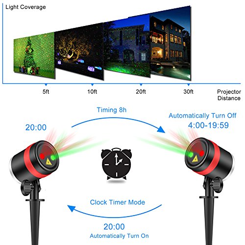 - ★Premium Quality With Built-In Timer: Aluminum Body, With Certificates Of Ce, Fcc And Ip65 Waterproof Resistance Makes It Safe To Use In Snowy, Rainy Or Intense Sunny Day (-15℉-90℉),Built-In Timer Makes The Laser Lights Automatically Turn On And Off From 2 To 8 Hours