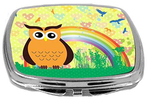 Rikki Knight Compact Mirror, Yellow Owl on Rainbow Hearts, 3 Ounce
