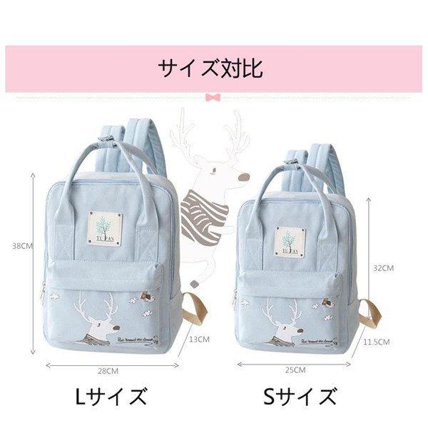 リュックサック アウトドア キッズ バッグ 通学 入学 お祝い 中学生 キッズバッグ リュック 遠足 女の子 入学祝い トナカイ柄/クジラ柄メイン素材:ポリエステル10タイプ:クジラ柄(ブルーS、ピンクS、ネイビーS、グリーンS)/トナカイ柄(ブルーS、ブラックS、カーキS、ブルーL、ブラックL、ピンクL)入園・入学準備にピッタリのデイパック。ヨチヨチ歩き~就学前のお子様にはSサイズ、小学生のお子様にはLサイズがおすすめ!見た目以上にたっぷり入るA4サイズのメイン収納に、フロントには大きめのファスナーポケットも。デザインがカラフルでとっても可愛い柄なのも人気の理由♪プレゼントに喜ばれること間違いなしです!サイズは、実寸を測っているため多少の誤差はございます。実商品とPC画面では、多少見た目の色に違いがございます。初期不良の場合、未使用の商品のみ到着日から7日以内にご連絡頂ければご返金、交換対応させて頂きます。●商品が到着しましたら、必ず中の商品を確認していただき、商品の到着後、3-4日間以内に必ず弊社までご連絡ください。★いかなる理由であってもご使用後の返品交換は承れません。