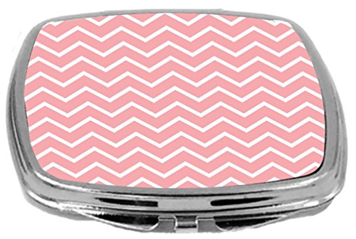 Rikki Knight Compact Mirror, Light Pink Chevron Zig Zag Stripes