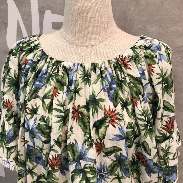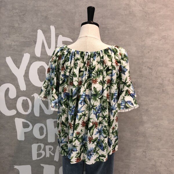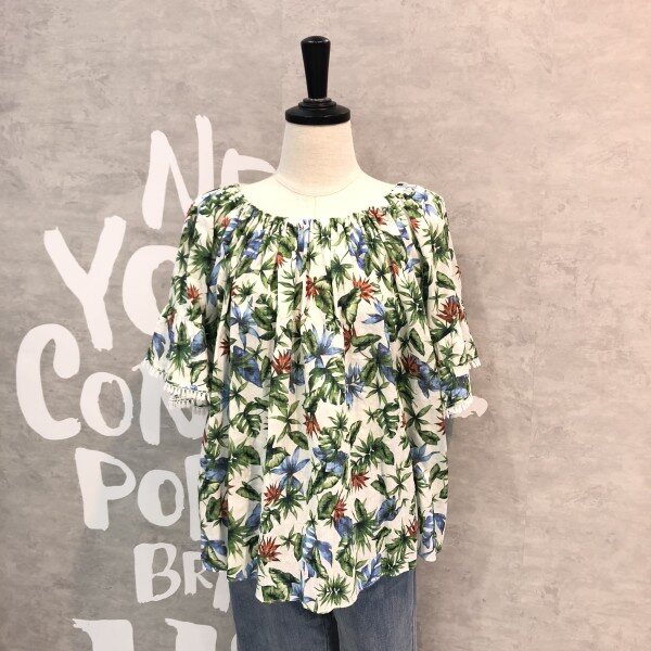 세련된 컬러감이 돋보이는 블라우스로 셔링이 포인트되어 발랄하고 여성스러운 느낌이 나고 오프숄더로도 코디가 가능한 아이템입니다