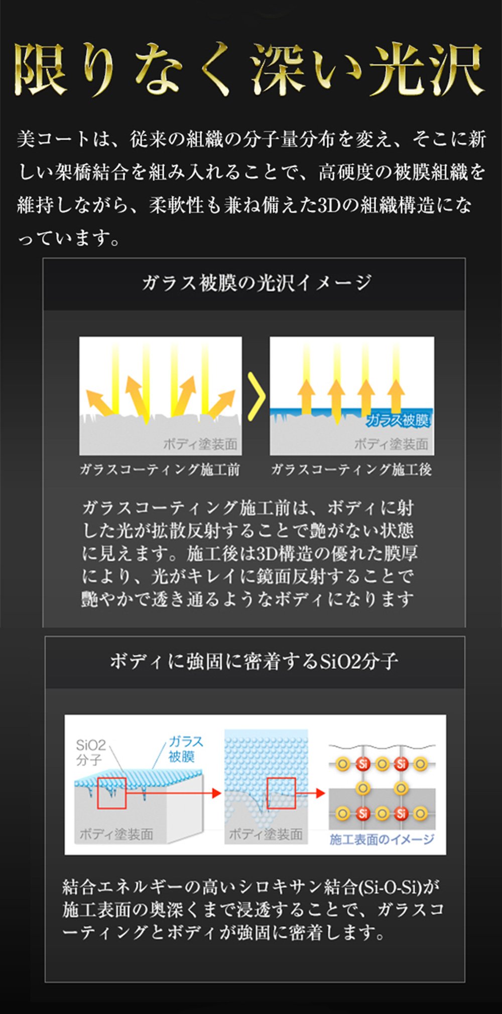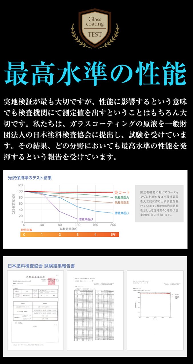 And because the glass coating of three structure of beauty coat is also excellent in weather resistance with less deterioration of ultraviolet rays, it keeps gloss for a long time.