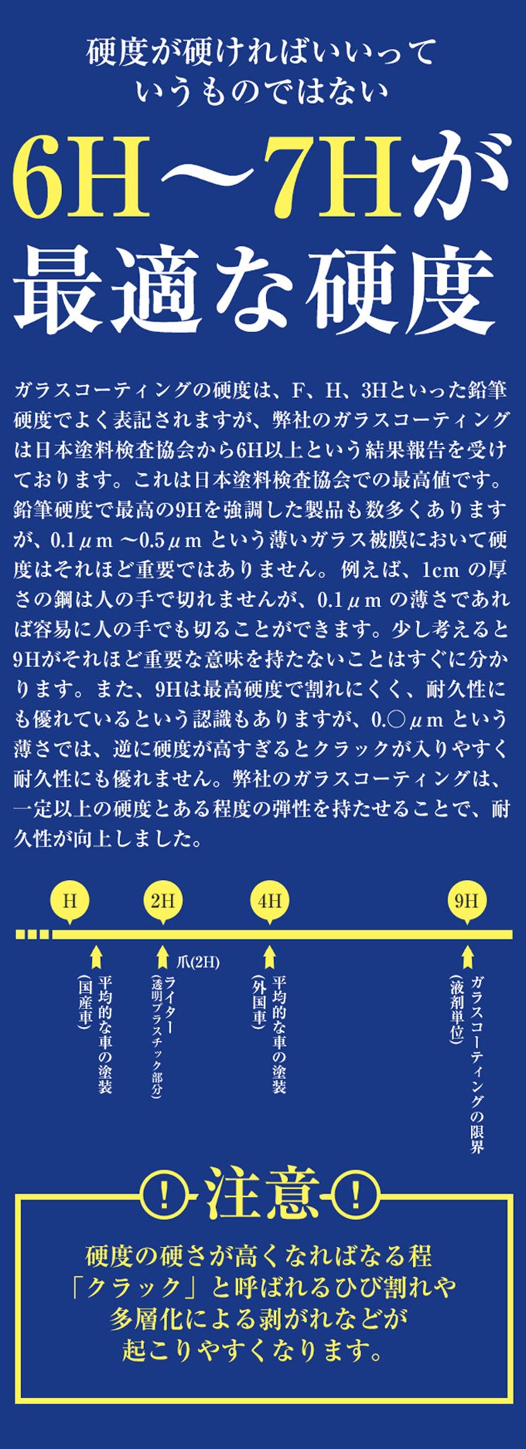 Our glass coating has received a result report from the Japan Paint Testing Association that it is 6H or more.
