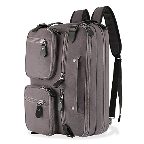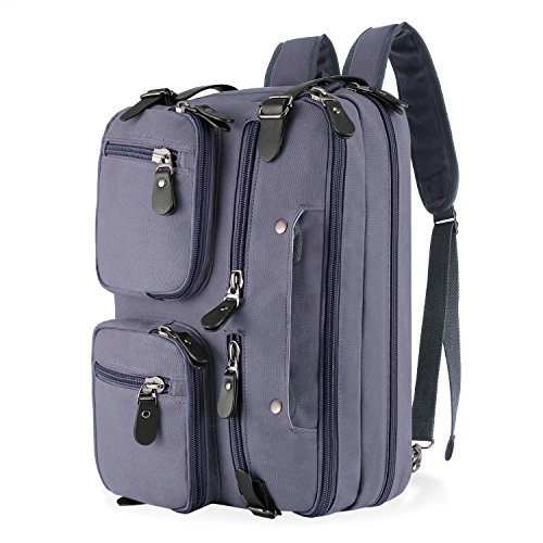 -. Title : Plambag Canvas Briefcase Backpack, Convertible 15" Laptop Messenger Bag