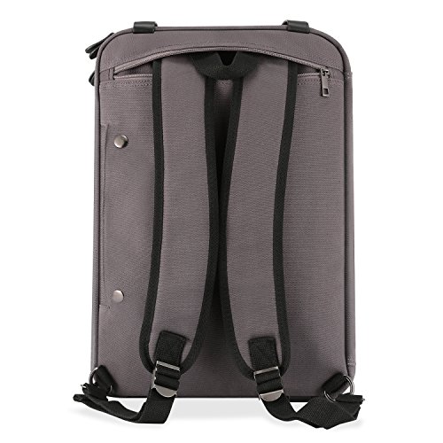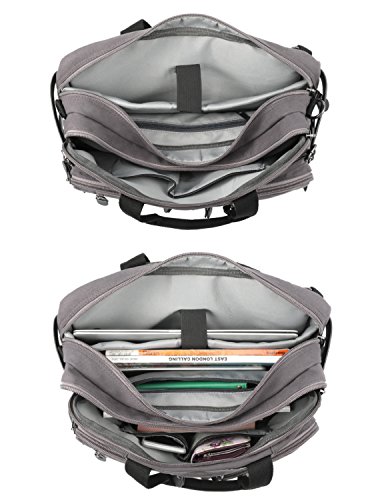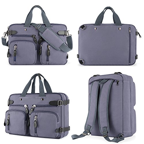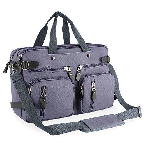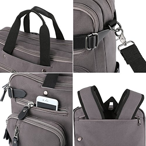 -. Feature : Made of high density canvas and great faux leather, top zipper closure / Multi-functional: come with a detachable and adjustable padded shoulder strap, this bag is convertible for use as briefcase, messenger bag, or backpack depending on need and carrying preference. Both the handles and the backpack strap can be hidden / Multi-pockets design: 2 main compartments, 1 padded laptop interlayer. Inside, 2 open wall pockets and 1 zipper wall pocket. 6 zipper pockets outside / Large capacity, It can hold laptop up to 15 inch / Perfect for daily life, work, travel and school to carry a week's worth of provisions or transport your daily essentials