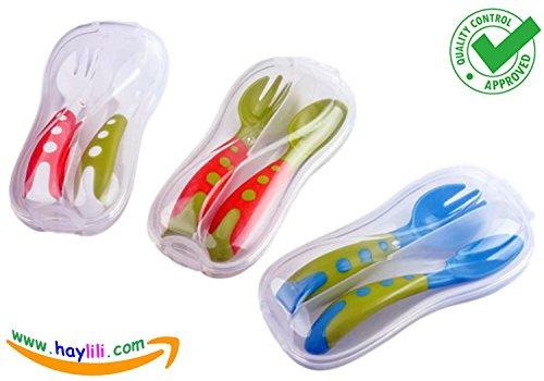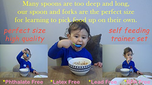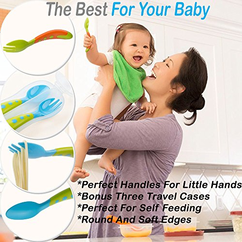 BABY FORK and SPOON SET with BONUS THREE TRAVEL CASES | Prefect Size Self Feeding Spoon Set | Travel Safe Fork and Spoon Set | Baby and Toddler...