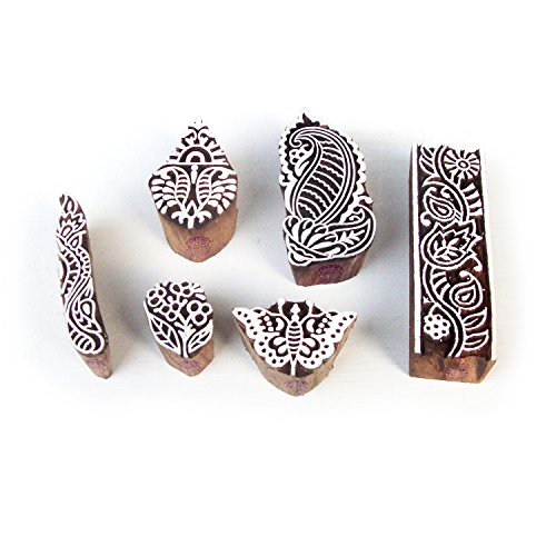-. Title : Butterfly and Paisley Hand Crafted Designs Wood Blocks for P.R.Inting (Set of 6)