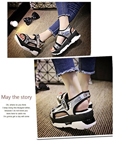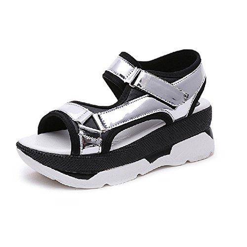 -. Title : 【ノーブランド品】ストラップサンダル スポーツサンダル 厚底 ウェッジソール 2カラー*5サイズ レディース yx505-lx01(シルバー/23.0)