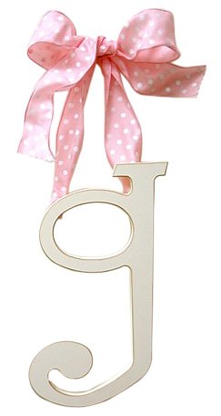 New Arrivals Wooden Letter G with Pink Polka Dot Ribbon, Cream