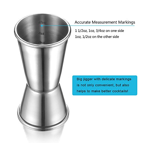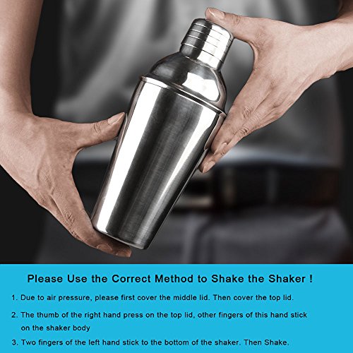 -. Feature : ✔ NO LEAKAGE » With specially designed leakproof lid, the ASOMMET cocktail shaker solves the leaking problem that most other cocktail shakers have. Don't have to worry about leaking and wasting your precious and expensive wine anymore ! Enjoy a cool and smooth experience making cocktails with ASOMMET! / ✔ X-LARGE JIGGER WITH MARKINGS » To help measure the ingredients with precision and use the right portions, an extra-large double jigger with measurement markings is made. One side marks 1 1⁄2oz, 1oz, 3⁄4oz. The other side marks 1oz, 1⁄2oz. Permanent laser-etched measurements won't wear off and dishwasher safe. / ✔ RECIPES & E-BOOK » 26 Recipes Booklet, 1000 Best Bartender's Recipe E-book , 50 most Classic American Cocktail History& Recipe E-book are included in the bundle. You'll learn how to make Bloody Mary, Margarita, Manhattan, Singapore Sling, Gin Fizz, Sex on the Beach, Tequila Sunrise, etc. Get it and start creating! You can be like a professional. Your friends will be surprised at your cocktail skills. / ✔ 100% MONEY BACK GUARANTEE » Try this dishwasher safe cocktail shaker kit. If not like expected, simply send it back for a 100% refund. No hassles and no questions asked. In addition, We offer you a 1-year free replacement, repair or adjustment warranty. So don't hold back. Best gift on Halloween, Thanksgiving, Cyber Monday and Christmas for your friends or for yourself! / ✔ HIGHLY RUSTPROOF » Professional 21 ounce capacity cocktail shaker / built in strainer / a 1.5/1.0 oz measurement jigger tool / a twisted bar spoon / two liquor pour spout / plus a Cocktails recipe and E-book. All of the tools are made from premium 304 stainless steel, the most rustproof and healthy material in the market. It is tested and recognized to be much more corrosion resistant than 201 stainless steel that most other cocktail shakers are made from. Try them out and see for yourself!