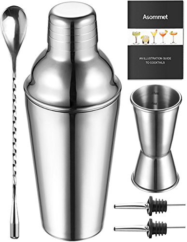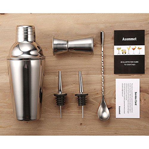 -. Title : Professional Cocktail Shaker Set By ASOMMET: 21oz Shaker With Built-in Strainer, Bartender Kit With Leakproof Martini Shaker, Spoon Wine Pourer Measuring Jigger Recipes, Rustproof 304 Stainless Steel